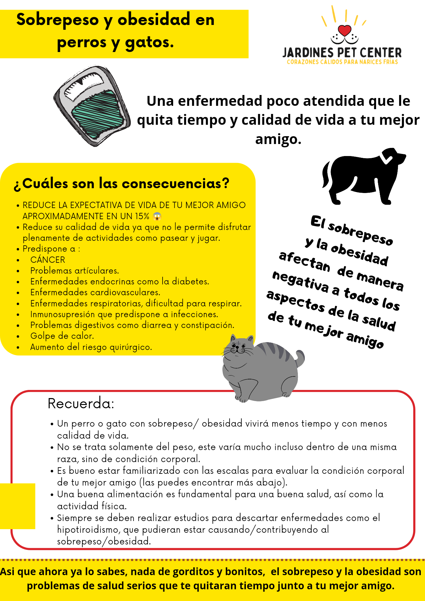 Muchas veces no se le da importancia al sobrepeso en los animales de compañía, incluso llegamos a adjudicar cierto grado de ternura a los perros o gatos que lo presentan, sin embargo, nada esta más alejado de la realidad. El sobrepeso y la obesidad representan una enfermedad que afecta de manera importante la salud y que debe atenderse lo más pronto posible.